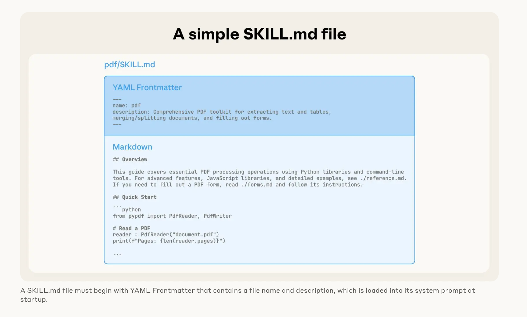 Skills are conceptually extremely simple: a skill is a Markdown file telling the model how to do something, optionally accompanied by extra documents and pre-written scripts that the model can run to help it accomplish the tasks described by the skill.